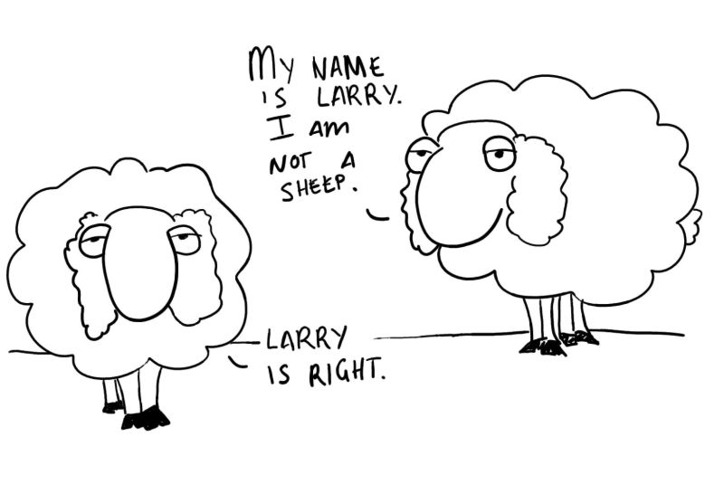 I have always found something terribly hilarious about sheep that say that they are not sheep. I first drew one of them in my first day of college, and since then I've been embarrassingly obsessed with them. They have appeared in my notes more often that I would care to admit. The reason for it? The sheep conspire against you. Do not be tricked by the sheep.);