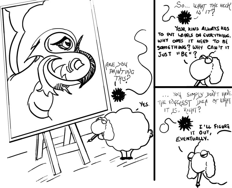 If art uses lies to express the truth... is art a liar? Something to think about. The greatest mystery of them all is, how did Larry paint the whole thing? On a stool, obviously.);