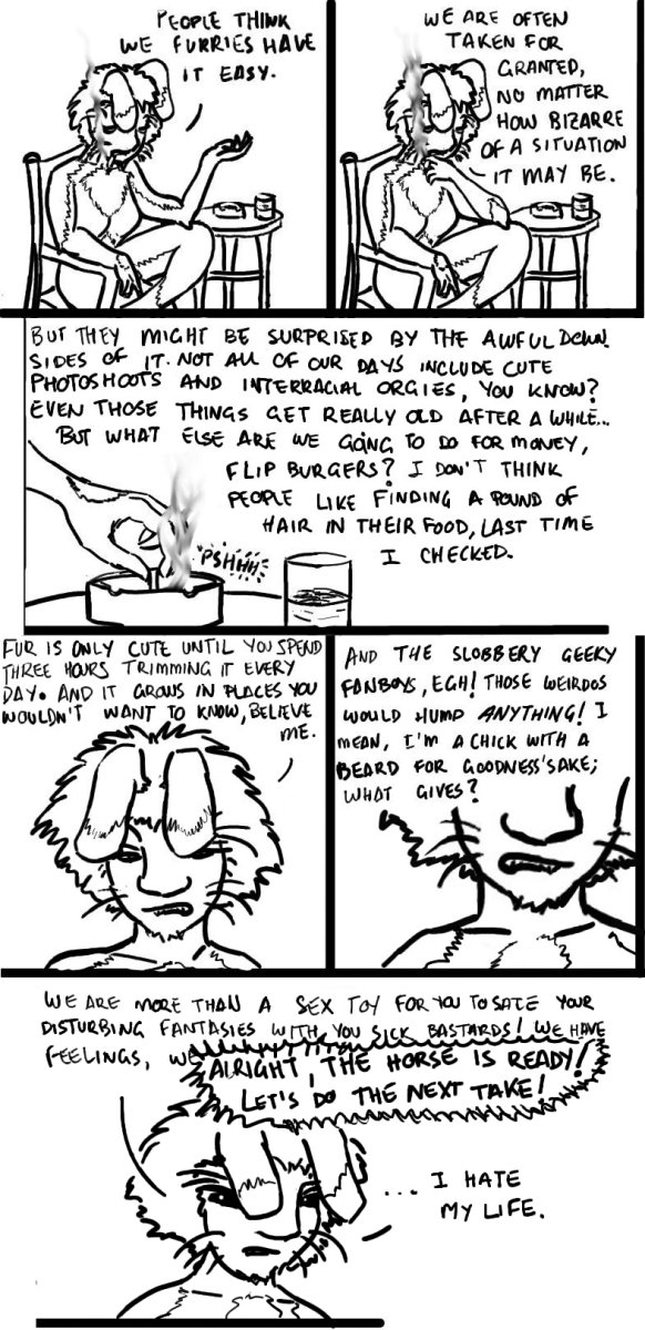 For someone who claims to have such utter disgust over furries, you seem to draw them quite often, don't you, Lord Bobbo? I told you not to get all smart on me dammit!!);