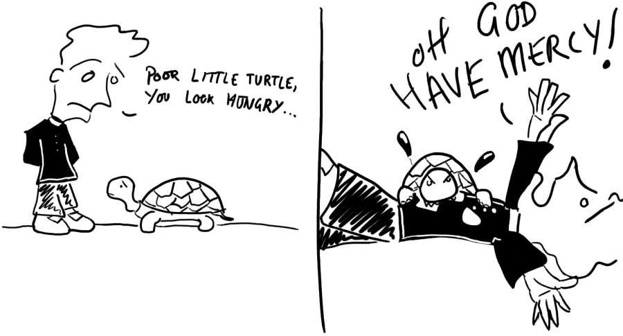 A non sequitur, or something deeper? Definitely a non sequitur. This teaches us that compassion isn't always the best path to follow. Indiscriminated violence is more likely to be successfully appliable to every situation you encounter - Keep these words close to your heart. You might remember this cartoon from the time the forums went down for a little while. This is as good a place to post it as anywhere else, so I don't care whether you already saw it or not. Well, I do care a little bit. I'm sorry.);