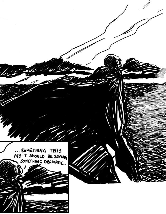 I have always found black and white lighting truly impressive and very meritful to pull off. Too bad I can't quite do it well! Anyway, today I felt like making fun of my own emo tendencies for occassional drama. Larry was originally intended to say something deep and soul-bending, you see, something angsty and dramatic like "... What am I?" or some sort of similar personality crisis. Only for a brief moment there, I almost took Larry's character seriously.);