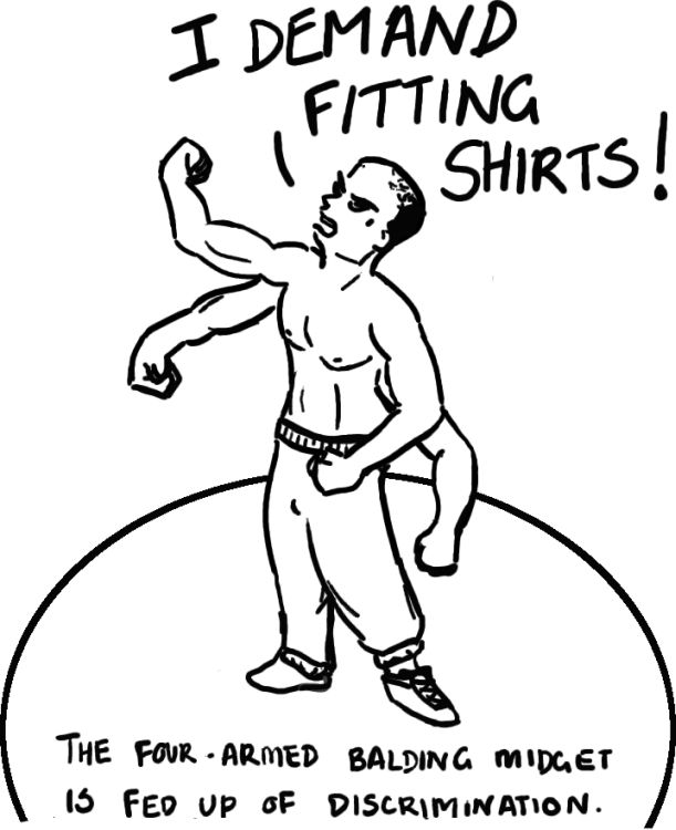 Is this a satyr on unreasonable demands from extremely small minorities, or just another excuse to use the word "midget"? I don't mean to offend the small people out there, I just love the word. Midget! Midget! Midget! I do realize that it is presumptuous to even fantasize about a midget being among the audience of these cartoons, which I very much doubt goes over a single digit number, yay!);