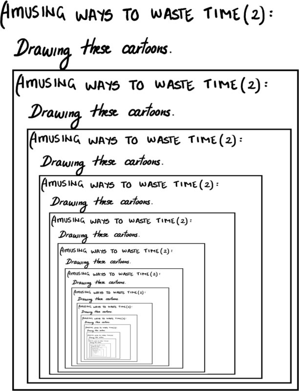 The recursive function of the art of wasting time. Recursive humor is lost on me.);